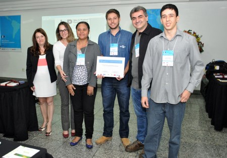 I2P Latin America Outstanding Showcase e-Score and I2P Latin America Coordinator Inaiara Coser.