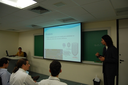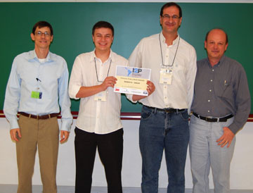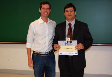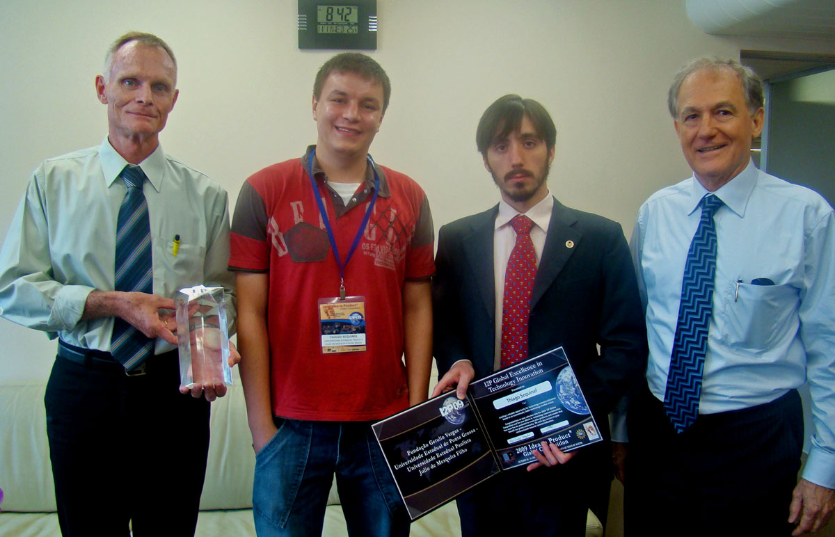 Luiz Eduardo Serafim and Marcelo Tambascia, from 3M do Brasil, and Nanoita team members Thiago Sequinel and Segio Mazurek Tebcherani, the winning team for the 3M Championship, final round of the I2P Latin America 2009, and the winning team for the FGVcenn Challenge.
