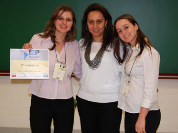 Carla Silva (Microsoft do Brasil) with LQBB team members Adelia and Marcela, 1st Runner Up for the 3M Championship and Winner for the Banco Votorantim Challenge.
